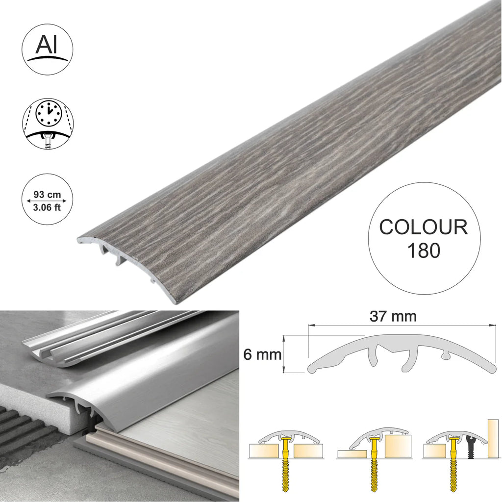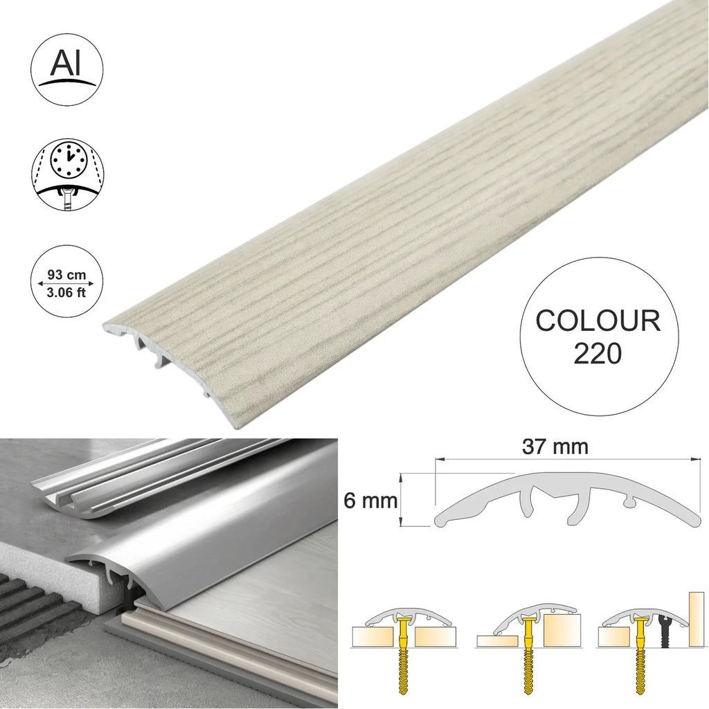 The S16K Aluminium 4-in-1 Wood-Effect Door Threshold (37mm) is a versatile and durable profile designed to provide smooth and stylish floor transitions. With its realistic wood-effect finish, it blends beautifully with laminate, wood, and vinyl flooring, while maintaining the strength and long-lasting performance of premium aluminium.