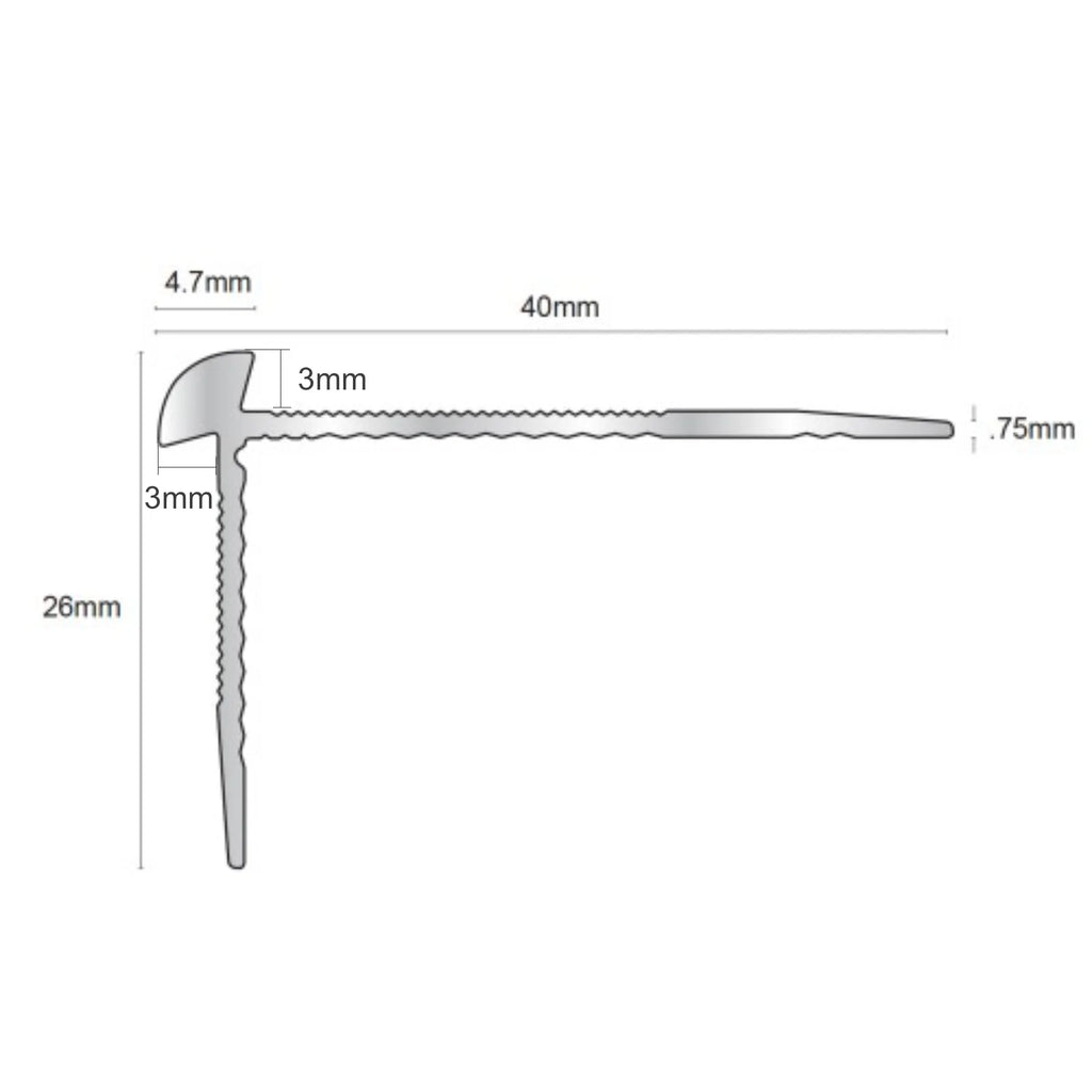 The TVC 40 x 26mm Anodised Aluminium LVT Stair Nosing Edge Profile is designed to provide a safe, professional finish for staircases fitted with 3mm luxury vinyl tiles (LVT). Crafted from high-quality anodised aluminium, it protects stair edges from wear and tear while adding slip resistance and a neat appearance. With its compact 40mm tread and 26mm riser, this profile is ideal for modern residential and light commercial installations.